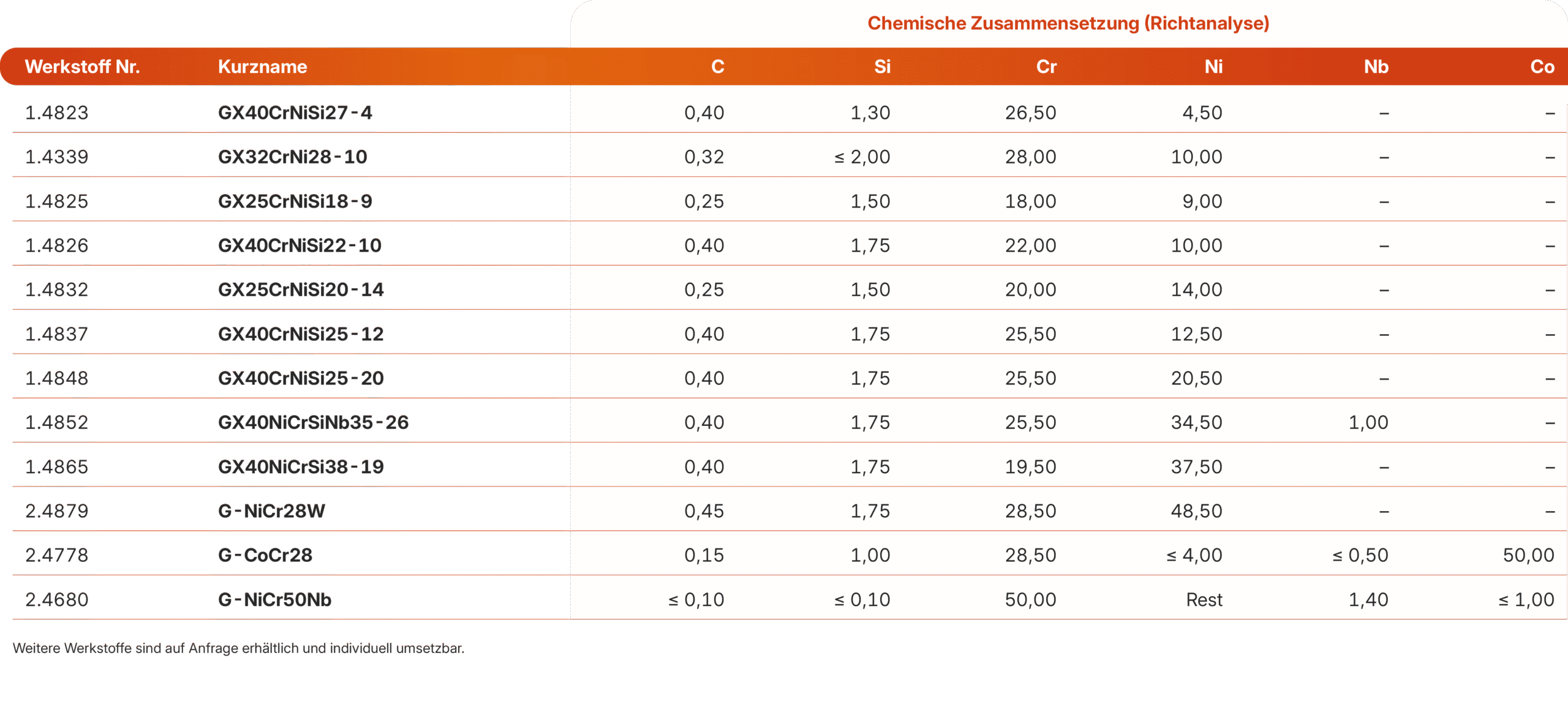 Werkstofftabelle