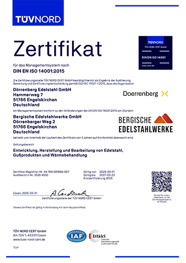 Zertifizierte Leistungen und regelmäßige Audits sichern bei den Bergischen Edelstahlwerken eine gleichbleibend hohe Qualität – transparent, effizient und nachhaltig. Unsere Management­systeme werden fortlaufend überprüft, Verbesserungs­potenziale identifiziert und Prozesse kontinuierlich optimiert. So erfüllen wir höchste Anforderungen und schaffen verlässliche Kundenzufriedenheit.