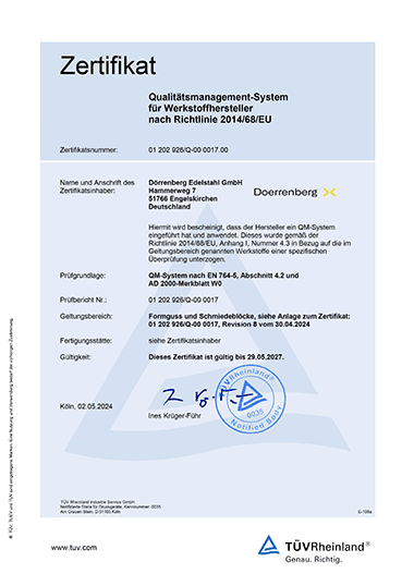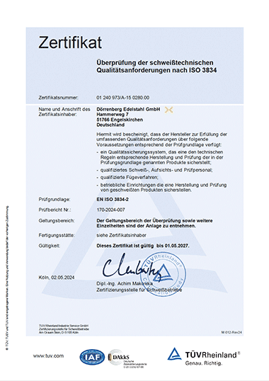 Die Bergischen Edelstahlwerke sind nach internationalen Managementsystemen zertifiziert, als Schweißfachbetrieb anerkannt und ausgewiesener Werkstoffhersteller. Wenn Sie Details zu unseren Zertifikaten benötigen – sei es für Audits, Projekte oder Ihre eigene Dokumentation – hilft Ihnen unser Ansprechpartner direkt und unkompliziert weiter.